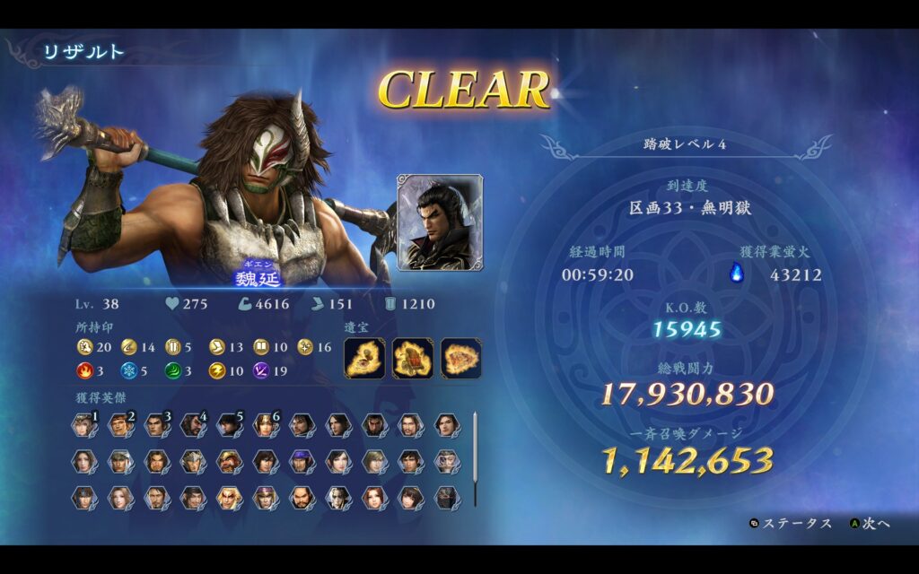 Steamの実績だとあとは20人敗北と30人敗北でトロコンになりますが、ゲーム内ではもちろん踏破レベル6のクリアがあるのでしばらくは地獄で沼っていられそうです。